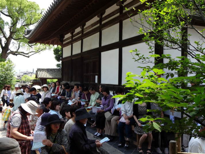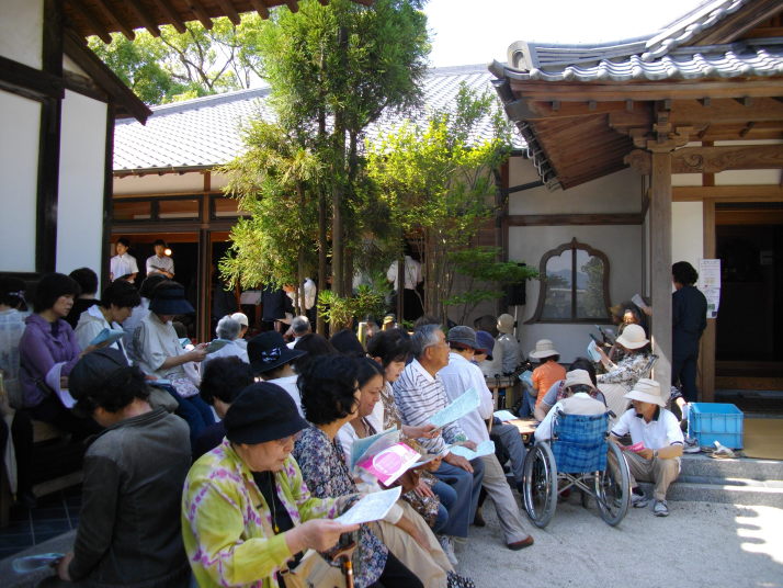 今年はちょうど満開でお天気も良く350人を越すお客様で、書院に入りきれず院庭にも大勢。